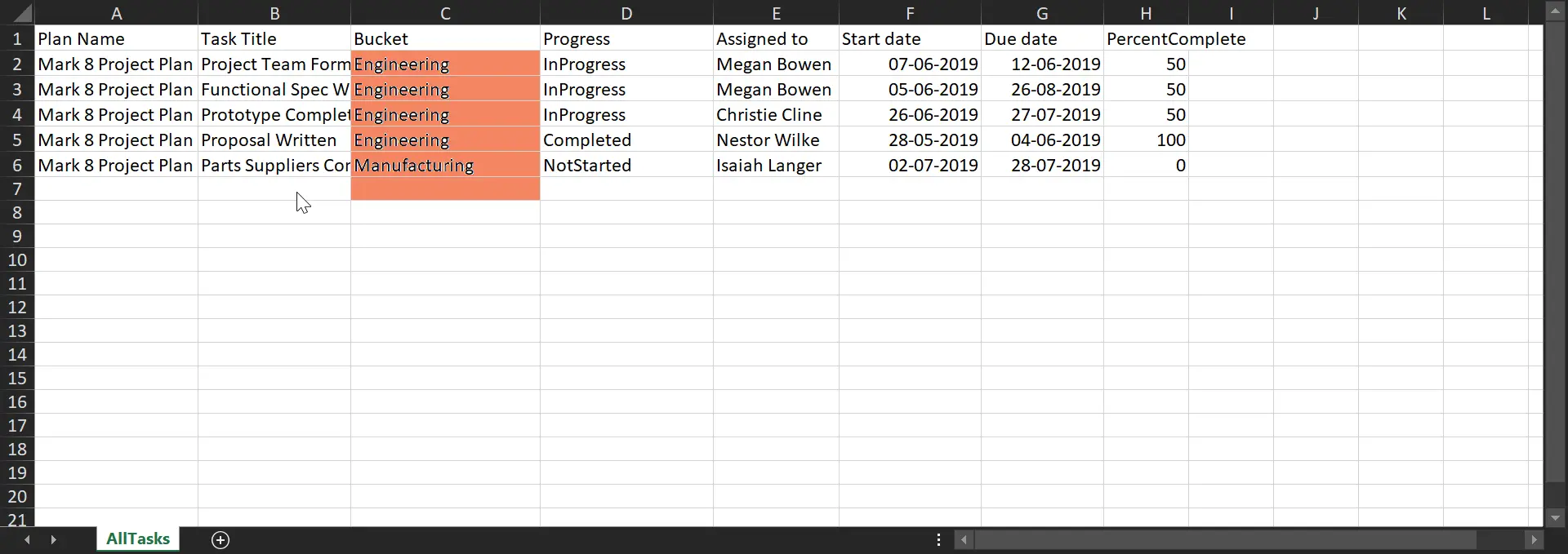 “Buckets” column and select the task you want and export it as an excel