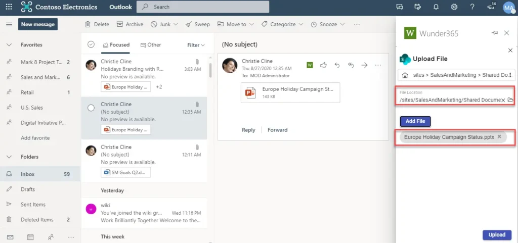 Wunder365 for office add-in overcome the specific user mail attachments.