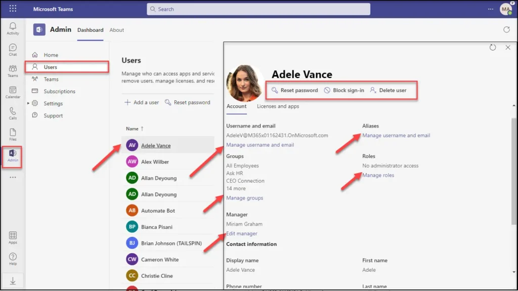Users get the convenience of performing certain must-have user-management features from the Microsoft 365 admin center. The key features include :