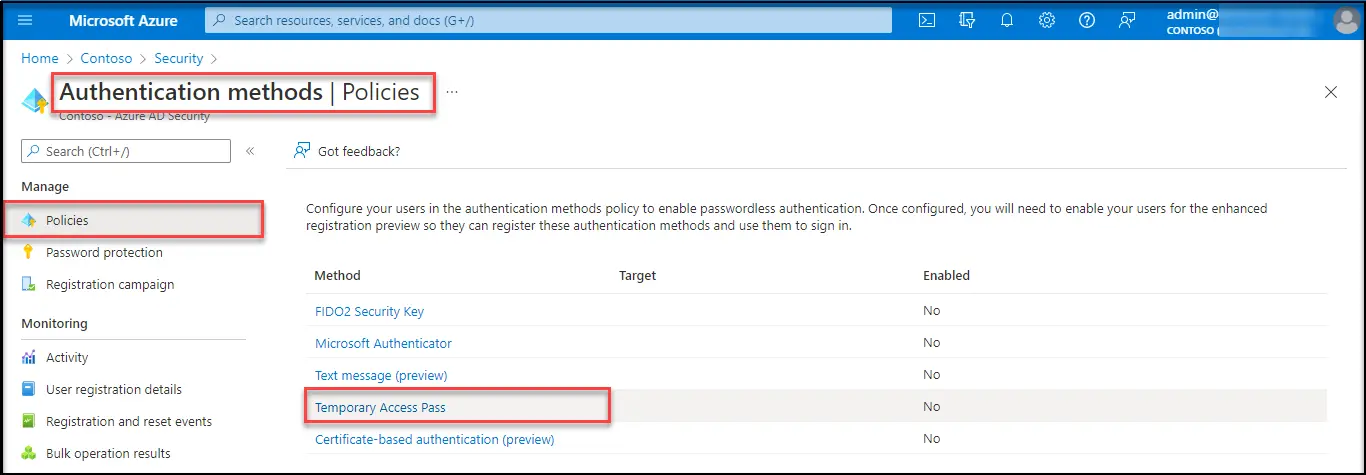 Global administrator and Authentication Policy administrator role holders are eligible to update the Temporary Access Pass authentication method policy. Follow the below steps to configure the Temporary Access Pass authentication method policy.