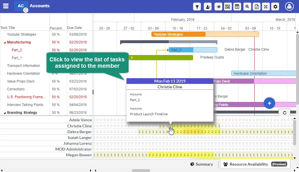 view the tasks by its status (Overdue, Unassigned, Not started, In